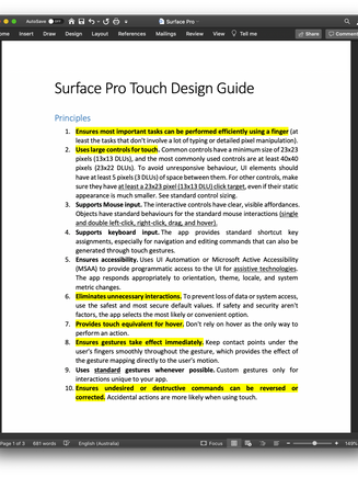 Because this application is a Windows application that is designed to run on a Surface Pro, the user experience of this application need to be optimised for both mouse clicking as well as finger pointing, dragging and such.
